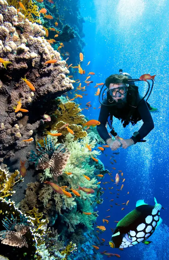 Chaque plongée est une leçon grandeur nature : apprendre à gérer votre matériel, contrôler votre flottabilité, communiquer sous l’eau et évoluer en binôme, tout en admirant la richesse de la faune locale — poissons-clowns, tortues, murènes et les fameux napoléons de la région.