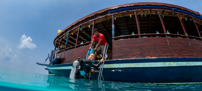 Derniers instants sous l’eau pour profiter une dernière fois des merveilles des Maldives. Début de la phase de désaturation et navigation de retour vers le point de débarquement.