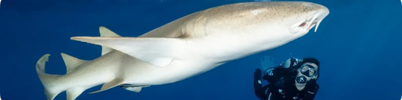 Exemples d’espèces que vous pourrez rencontrer : requins tigres, requins bouledogues, requins marteaux géants, requins tisserands, requins citrons, raies guitares, raies pastenagues, raies aigles, raies marbrées, raies plumettes et raies manta.
