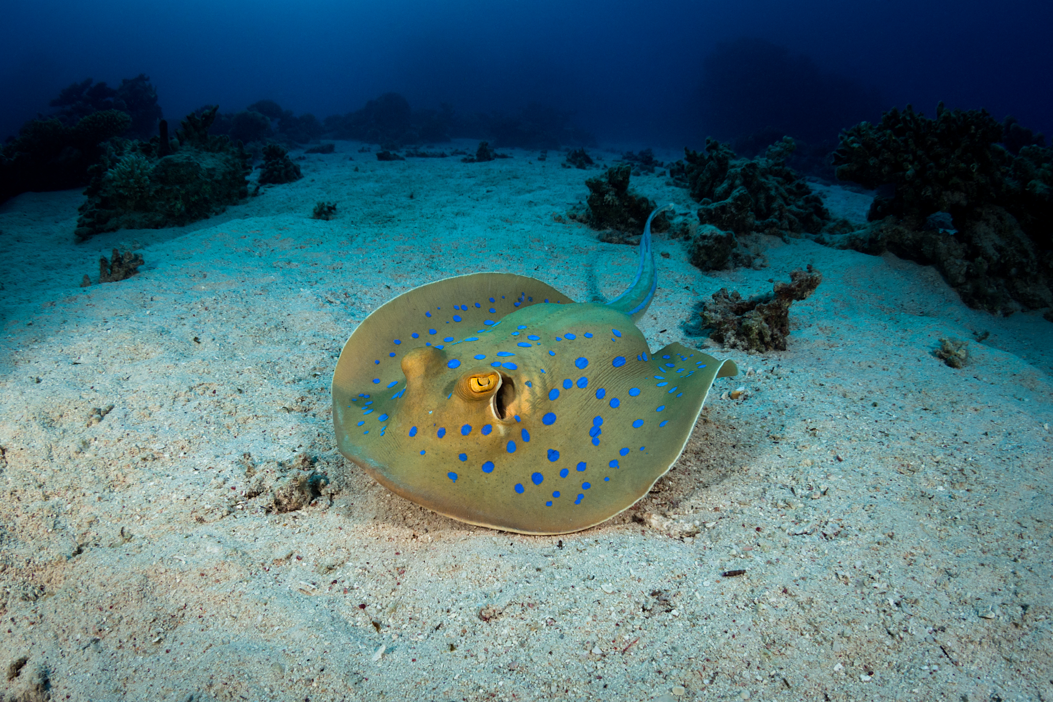 La raie pastenague à taches bleues ou pastenague queue à ruban est une espèce de poissons cartilagineux de la famille des Dasyatidae. Cette raie est présente de la zone intertidale jusqu'à une profondeur de 30 m.